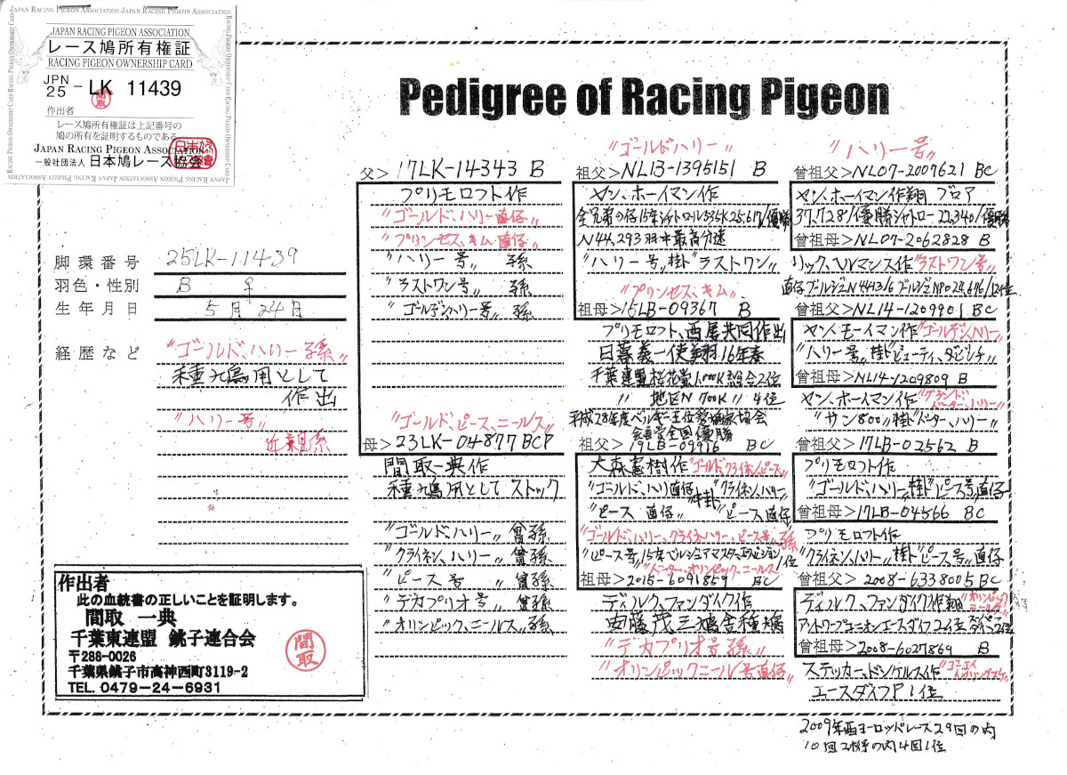 出品鳩「25LK11439 B」間取一典作プリモ作(ゴールドハリー号×プリンセス・キム号)×(コールドハリー号近親孫×オリンピックニール号の娘) ![]() |