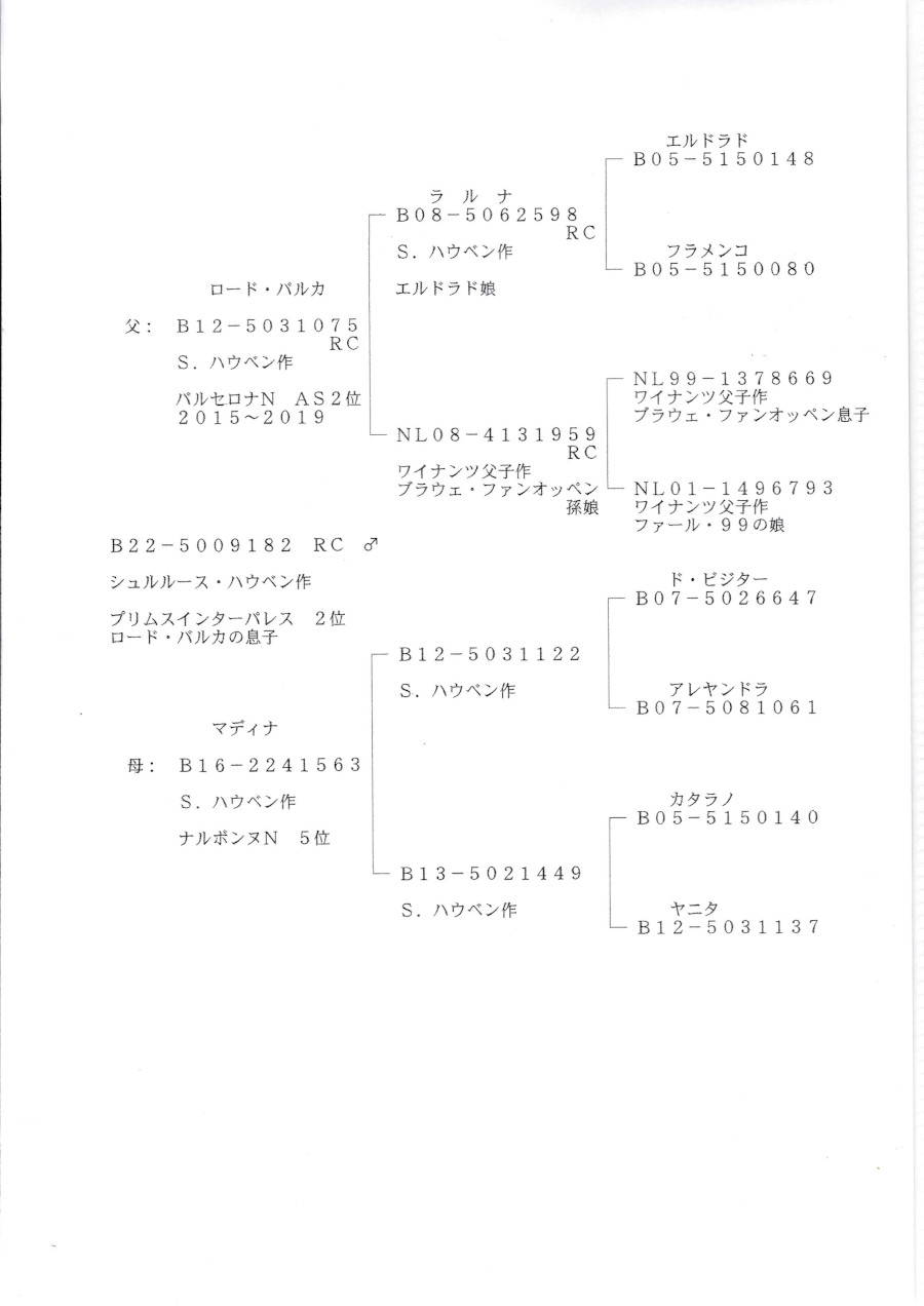 | 出品鳩「B22−5009182 RC♂」S・ハウベン作 ロードハルカ号19年バルセロナN5年間エースP2位・プリズムインターパルス2位の直仔 | オークションNo: 1761451665 |