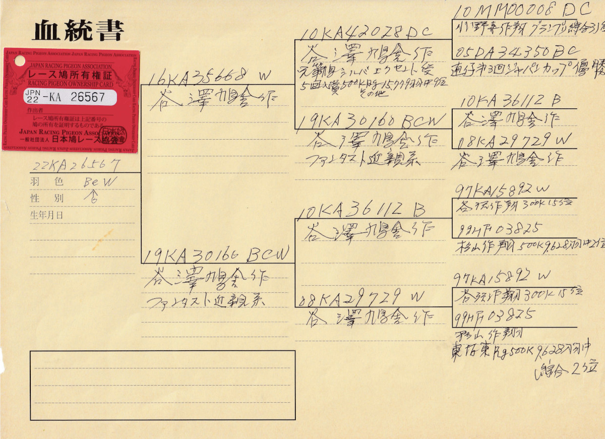 | 出品鳩「22KA26567 BCW♂」谷沢六雄作(第三回Jカップ優勝の異父兄弟&RG15779羽9位全兄弟×ファンタスト近親系)直仔×ファンタスト近親系鳩 | オークションNo: 1761454399 |