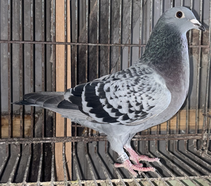 出品鳩 「25DA11949 BC」菅原 明鳩舎作 両親シュルールス・ハウベン作 アリタ号バルセロナN6187羽総合60位直仔×バルセロナN7438羽1237位鳩(全兄弟にアリタ号バルセロナN60位)との直仔です。 父親 「B19−5016750 BC」シュルールス・ハウベン鳩舎作 ユアナ号バルセロナN6178羽総合81位の全兄弟 × アリタ号バルセロナN6187羽総合60位(異父兄弟サリタ号ロージバルカ号プリズムインターハレス1位2位)との直仔です。 母親 「B16−2241611 BC」シュルールス・ハウベン鳩舎作翔 バルセロナN7438羽1237位鳩 全兄弟にアリタ号バルセロナN60位鳩 異父兄弟にサリタ号ロージバルカ号プリズムインターハレス1位2位鳩がいる フアンタンゴ号直仔×ワインンツ作ブラウエファンオッペン号孫鳩 との直仔です。 詳しくは、添付の血統書を参照してください。 <備考> 現在管理人の鳩舎で元気に暮らしています。写真11/1日に撮影しました。 菅原明鳩舎の概要はこちらをご覧ください |