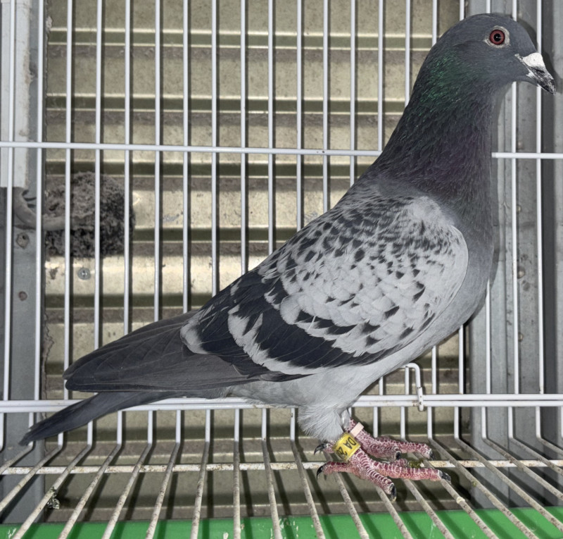 出品鳩リスト外「24DA26619 BC ♂」小川安都志鳩舎作 ド・606号J・ファンデマーデ作翔 サルプリNPO5420羽中総合優勝&同17448羽中総合10位鳩 ×ドリームハリー号孫&RG3333羽総合7位地区N3748羽総合4位兄弟鳩 との直仔です 父親 "ド・606号"「NL20−1469606 B」J・ファンデマーデ鳩舎作翔 サブリナNPO5420羽中総合優勝&同17448羽中総合10位 ヴェルゾンNPO15991羽中総合75位鳩で アルジャントンNPO6925羽総合3位×ド782号 との直仔です。 母親 「22LK11095」小川安都志鳩舎作 兄弟にRG3333羽総合7位地区N3748羽総合4位鳩がいる ハリーディルク号(ドリームハリー号&ハリー号直仔×クライネンディルク号孫)×(カイチョウ・ブリクセン号×ラカーチェ号)娘鳩 との直仔です。 詳しくは、血統書を参照してください。 <備考> 現在管理人の鳩舎で元気に暮らしています。写真11/29日に撮影しました。 菅原明鳩舎の概要はこちらをご覧ください |