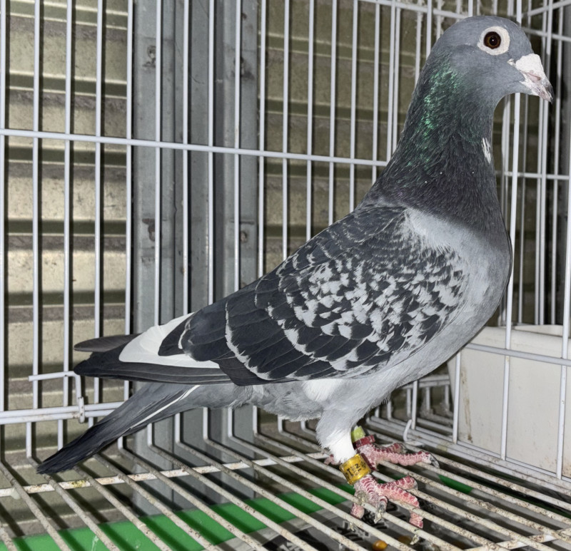 出品鳩「NL19−1463045 BCW♂」テオ・ブルハース作ド・ヨンゲボンチ号基礎鳩(直仔にド66号孫鳩ペーチェ号)×ド66号バルセロナN219位の娘 ![]() |