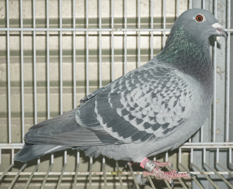 出品鳩若79番「25LC10036 BC」張替雅之作田中作(ドルバルセロナ号全兄弟×両親イエレマ作基礎鳩ズワルドゴゥド号孫)×ラ291号RG524羽総合優勝 ![]() |
