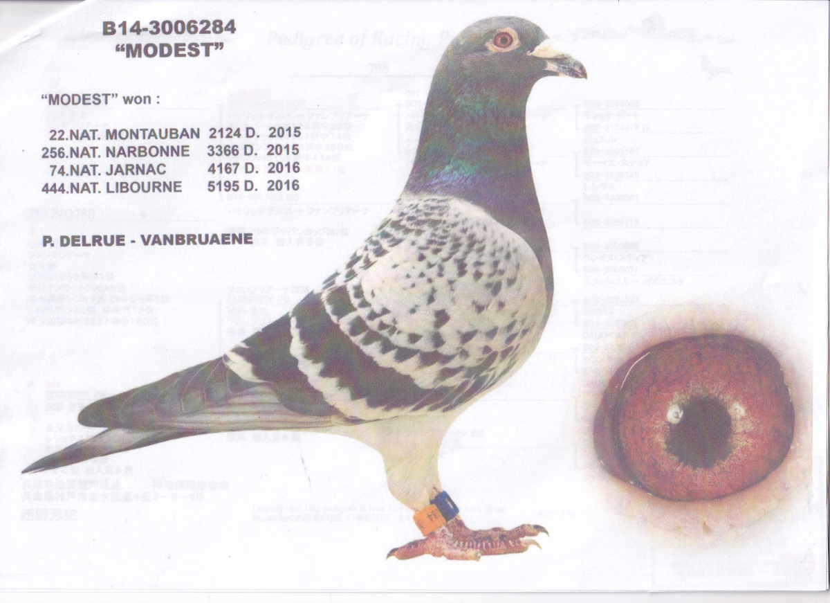 出品鳩「25XB03765 B」西野芳史鳩舎作全兄弟に200K優勝埼玉RG総合32位GP180位鳩がいる ファンブリアーナ系(モデスト号モントバーンN2124羽22位ジャルナックN4167羽74位鳩×モデスト号娘)直仔×340号(ファンブリアーナベストカップルの♂×♀)娘鳩 との直仔です。 父親 ”999号”「20XB06999 BC」西野芳史鳩舎作 直仔に 200K優勝埼玉RG総合32位GP180位鳩 半兄弟に 地区N総合57位JC総合297位鳩がいる ファンブリアーナ系 モデスト号モントバーンN2124羽22位ジャルナックN4167羽74位鳩 ×ファンブリアーナ作モデスト号の娘鳩 との直仔です。 との直仔に RG400K優勝300k優勝地区N700K優勝鳩がいる ファンブリアーナベストカップルの♂×ファンブリアーナベストカップルの♀鳩 との直仔です。 母親 ”340号”「22XB03340 PB」西野芳史鳩舎作 直仔に 200K優勝埼玉RG総合32位GP180位鳩 全兄弟の直仔に 300K総合優勝地区N総合4位5位 RG総合3位鳩がいる ファンブリアーナベストカップルの♂×ファンブリアーナベストカップルの♀鳩 との直仔です。 詳しくは、血統書を参照してください。 <備考> 現在管理人の鳩舎で元気に暮らしています。写真1/24日に撮影しました。 菅原明鳩舎の概要はこちらをご覧ください |