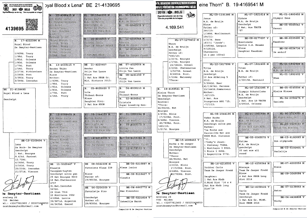 出品鳩「24WZ07370 BC ♀」天野 茂鳩舎作両親デスメーター・レスチアン作ソラ号ブルージュN8424羽66位ブロワP5208羽17位ヴィエルゾンP7838羽40位全兄弟×レナ号ブールジュN8424羽総合優勝の娘鳩 との直仔です。 父親 "クレイン・ソーン"「B19−4169541 BC」デスメーター・レスチアン鳩舎作 兄弟にソラ号ブルージュN8424羽66位ブロワP5208羽17位ヴィエルゾンP7838羽40位鳩がいる ドブレイン作ソーン号(ヤヌス号×ティティア号)×デスメーター作KBDBミドルNエースP1位鳩2位鳩の半兄弟鳩 との直仔です。 母親 「B21−4139695 BC」デスメーター・レスチアン鳩舎作 ロイヤル・ブラッド号優勝6回428羽98羽81羽80羽79羽54羽核優勝鳩×レナ号ブールジュN8424羽総合優勝鳩 との直仔です。 詳しくは、血統書を参照してください。 <備考> 現在管理人の鳩舎で元気に暮らしています。写真2/9日に撮影しました。 菅原明鳩舎の概要はこちらをご覧ください |