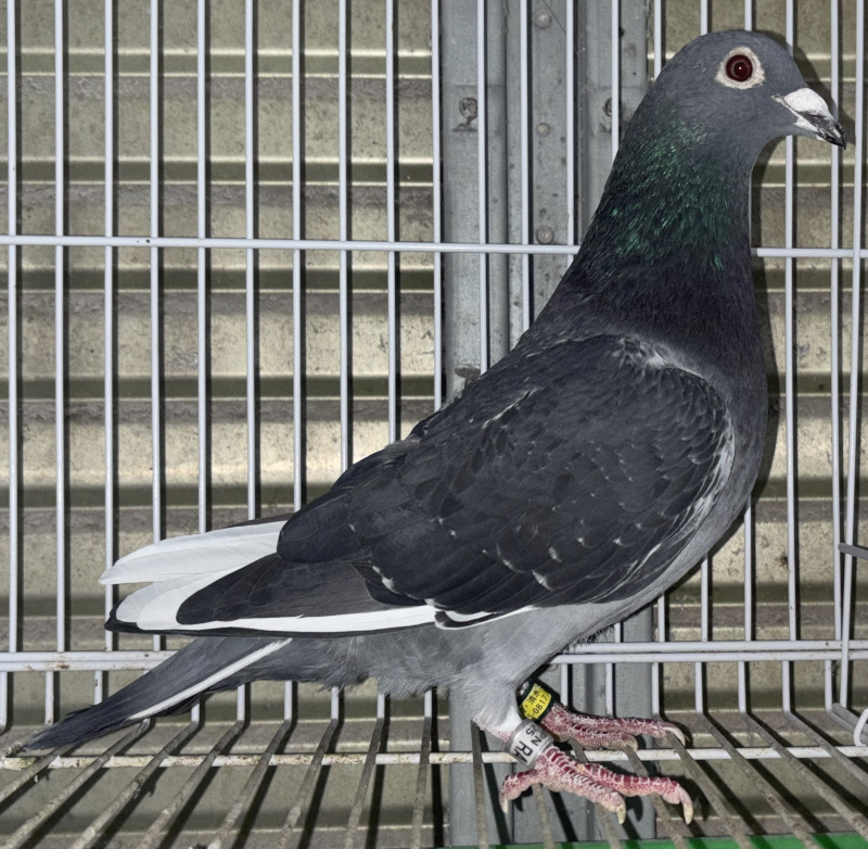 出品鳩若21番「25RA01611 BLKCW」清水良典鳩舎作岩田輸入系(777×619)5739重近親鳩 (北陸稚内GN1100K総合47位XGP700K総合15位)直仔×北陸稚内GN1100K総合47位の異母兄弟(800k28位1100k×RG500K2275羽総合9位)娘鳩 との直仔です。 父親 「13RA04040 BCW」清水良典鳩舎作 北陸稚内GN1100K総合43位(北陸CH総合12位X沼キング号の孫)XGP700K総合15位(オランダ地方中距離AP1位X沼田キング号の孫)娘鳩 との直仔です。 母親 ♂38番21年生「20RA02402 BLKC ♀」清水良典鳩舎作 異父兄弟にGP700K総合9位鳩北陸GN1100K総合43位鳩がいる 岩田輸入系(777×619)4125重近親鳩で 小樽800K28位 × RG500K2275羽総合9位鳩 との直仔です。 詳しくは、血統書を参照してください。 <備考> 現在管理人の鳩舎で元気に暮らしています。写真3/26日に撮影しました。 菅原明鳩舎の概要はこちらをご覧ください |