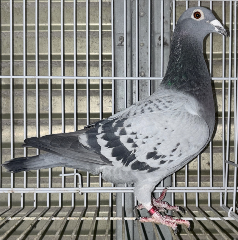 出品鳩「20KA04572 BC ♀」中田幸雄鳩舎作直仔に 埼玉中地区6連合会D総合3位鳩がいる ボルドー056号200K1469羽14位300K715羽6位500k426羽21位700k246羽19位1000K50羽4位連合会最優秀鳩×レイ・スカイウォカー号L&H・シウン作翔 フォンテネーP5966羽総合優勝鳩 との直仔です。 父親 "ボルドー056号"「14KA34056 BC」中田幸雄鳩舎作翔200K1469羽14位300K715羽6位500k426羽21位700k246羽19位1000K50羽4位連合会最優秀鳩で ブラウエ・ゼウス号R・ヘルマン作(KFCエースP3位×ベルギー最優秀若鳩3位)×クライネンボルドーチェ号 との直仔です。 母親 ”レイ・スカイウォカー号”「B17−3070152 B」L&H・シウン鳩舎作翔 フォンテネーP5966羽総合優勝クレルモントP9028羽総合7位鳩でノミ号ボアチェN13135羽総合優勝している二代連続総合優勝鳩です。 詳しくは、血統書を参照してください。 <備考> 現在管理人の鳩舎で元気に暮らしています。写真3/26日に撮影しました。 菅原明鳩舎の概要はこちらをご覧ください |