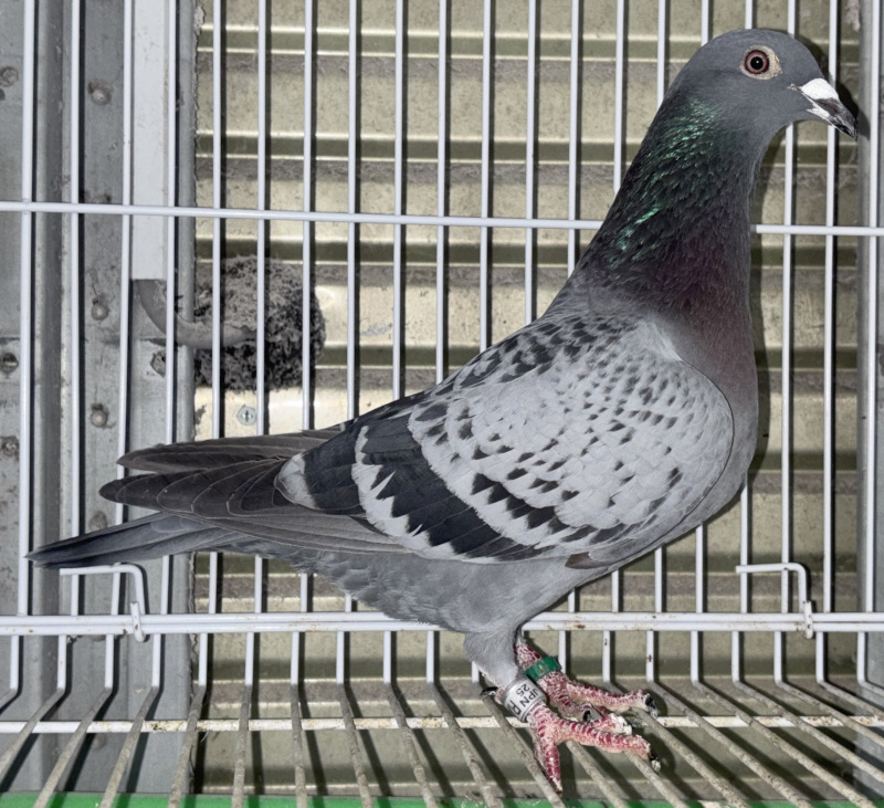 出品鳩若77番「25RA01687 BC」清水良典鳩舎作 岩田輸入系21年北陸稚内GN1100k総合90位鳩×24年北陸稚内GN総合30位&1100k地帯2位(海老稚内号GN総合優勝全兄弟×岩田輸入系777/619号1197重近親鳩) との直仔です。 父親 ♂28番「19RA02533 BC ♂」清水良典鳩舎作翔 21年北陸稚内GN1100k総合90位 全兄弟に25年北陸GN総合83位鳩がいる(アーノルド号バルセロナIN総合優勝孫X日本海ブラット号&日本海号の重近親)直仔×三木作岩田輸入系 海上600k優勝(岩田7689号&5085号&3727号のラインX岩田赤穂号兵庫桜花賞1000k総合優勝)娘鳩 との直仔です。 母親 ♀53番「23RA02016 B♀」清水良典鳩舎作翔24年北陸稚内GN総合30位(1100k地帯2位)海老稚内号北陸稚内GN1000K総合優勝全兄弟×岩田輸入系(777×619)1197近親(北陸稚内GN1100K総合43位 ×北陸稚内GN1100K総合12位)娘鳩 との直仔です。 詳しくは、血統書を参照してください。 <備考> 現在管理人の鳩舎で元気に暮らしています。写真4/16日に撮影しました。 菅原明鳩舎の概要はこちらをご覧ください |