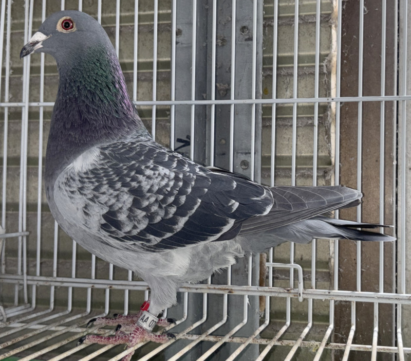 出品鳩28番「25AA07812 BC」チャンピオンロフト作香山光男作ブリュッヘマン系オルハンミラ号(オルファン号バルセロナIN8位×ミラー号バルセロナN8位)孫×高山作(東海CH総合優勝&東海GN総合優勝直仔X咲咲号全日本AP賞全国1位)娘鳩 との直仔です。 父親 「20DA16888 BC」チャンピオンロフト作香山光男作両親ブリュッヘマン作オルハンミラ号(オルファン号バルセロナIN8位×ミラー号バルセロナN8位)直仔×(ブリュッヘマン作デン51号&オード62号の近親×オルハンミラ号&GN1100K総合2位娘)娘鳩 との直仔です。 母親 「15SA17777 BC」高山初夫鳩舎作(東海CH総合優勝X東海GN総合優勝)直仔X咲咲号全日本AP賞全国1位(東海CH総合2位Xペルピナンクィーン号ペルピナンIN総合優勝の娘)鳩 との直仔です。 詳しくは、添付の血統書の参照をお願いいたします。 <備考> 現在管理人の鳩舎で元気に過ごしています。写真は4/23日に撮影しました。 菅原明鳩舎の概要はこちらをご覧ください |